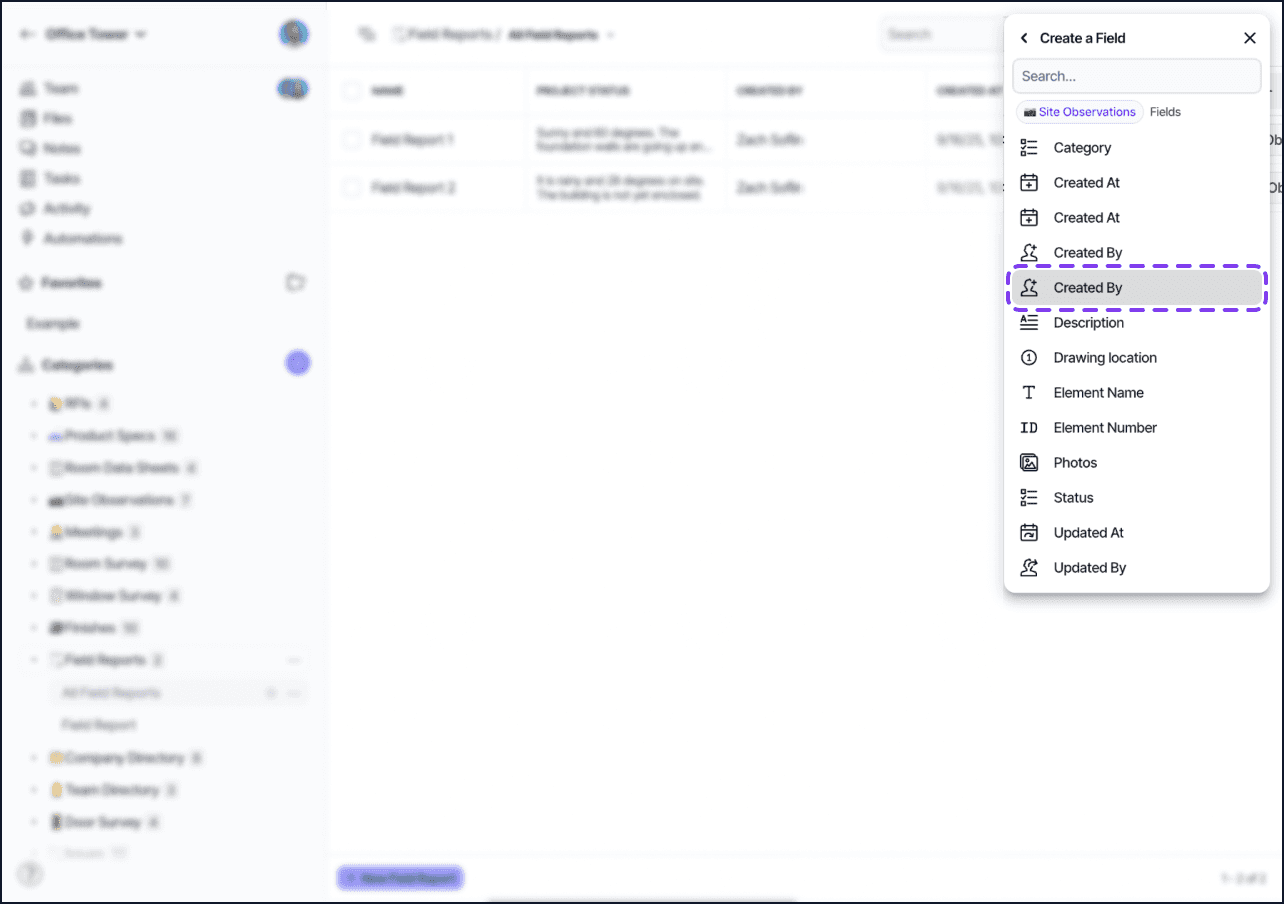 Select the property you want to display (for example, Created By, Description, Drawing Location, or Updated At).