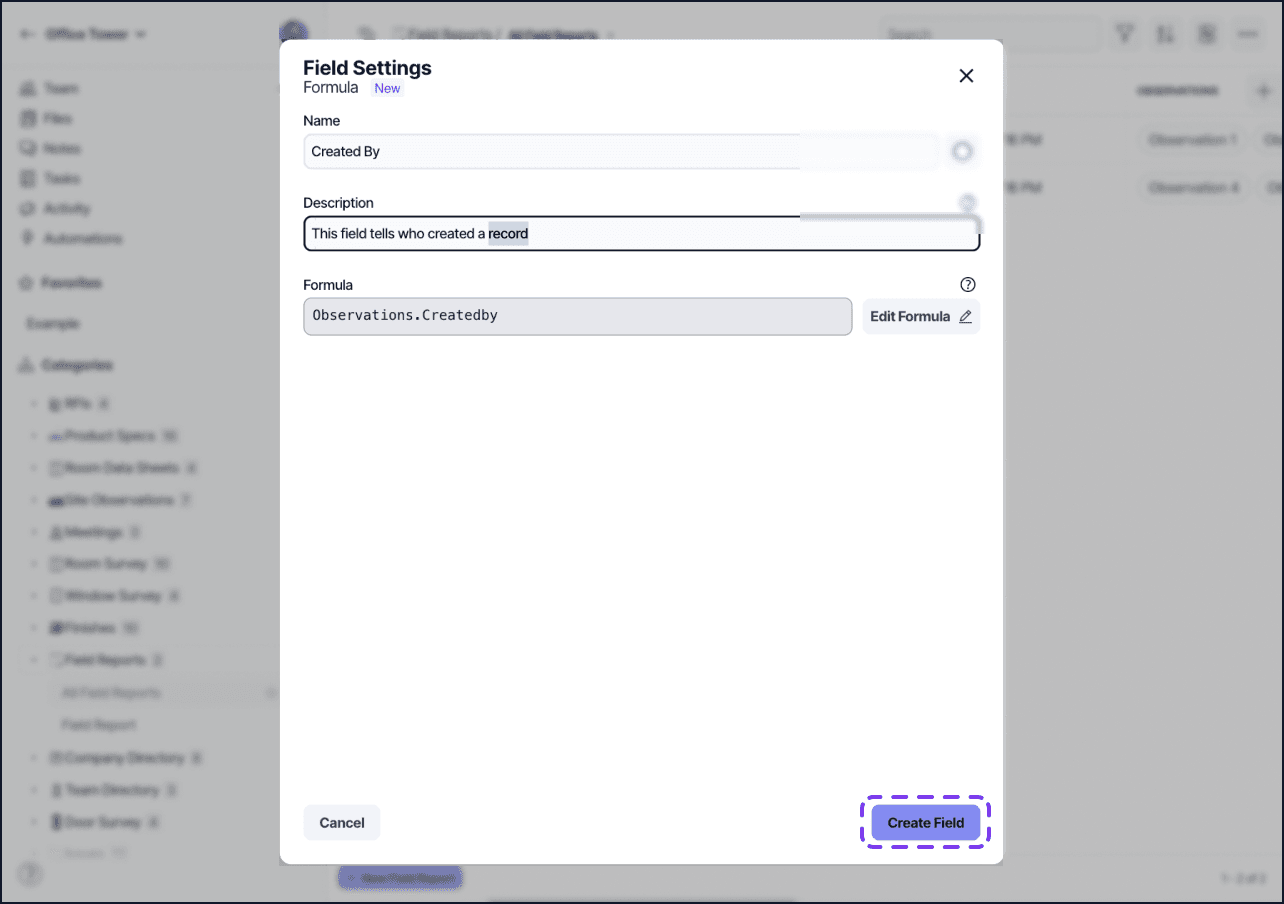 Give your new field a name, the click Create Field. The value will appear automatically for each related item.
