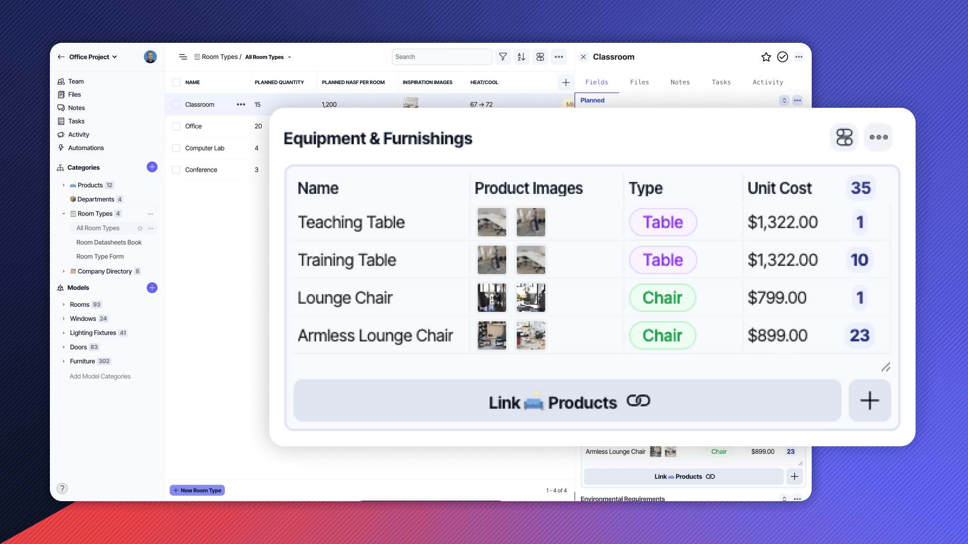 Automatic - Build a set of filter criteria (think automatic lookups) referencing element data to return all matching elements. Automatic relationships compute based on live project data and instantly refresh when updated data is available.