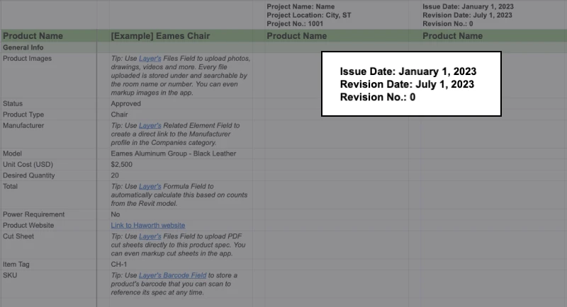 5. Remember to update the Revision Date and Revision No. when you need to make any changes and re-issue the FF&E Schedule or Room Data Sheet.