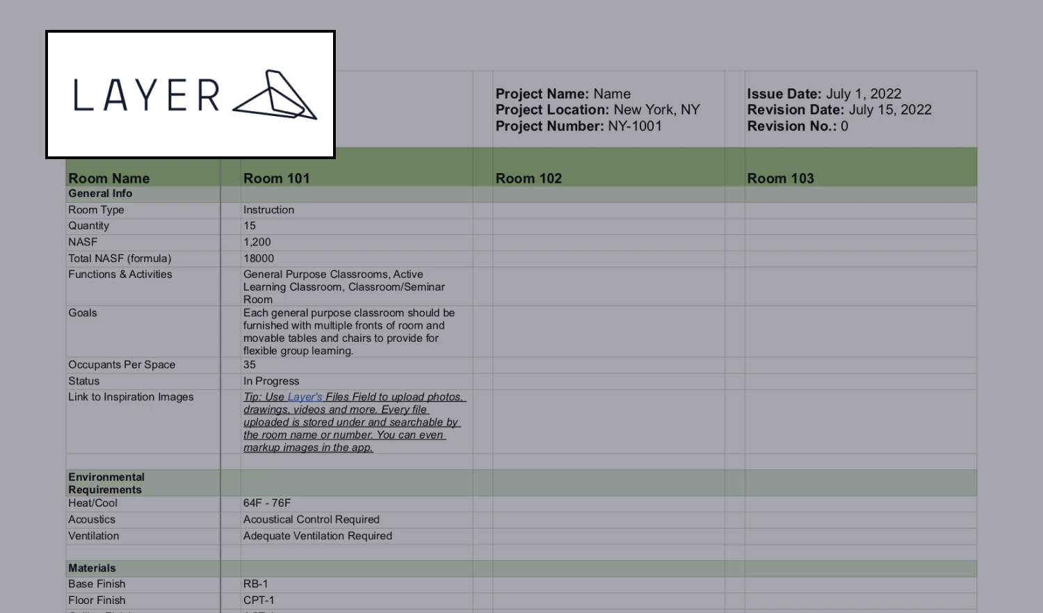 Once you download the free Room Data Sheet template at the top of this page, you’re ready to customize the template for your project.